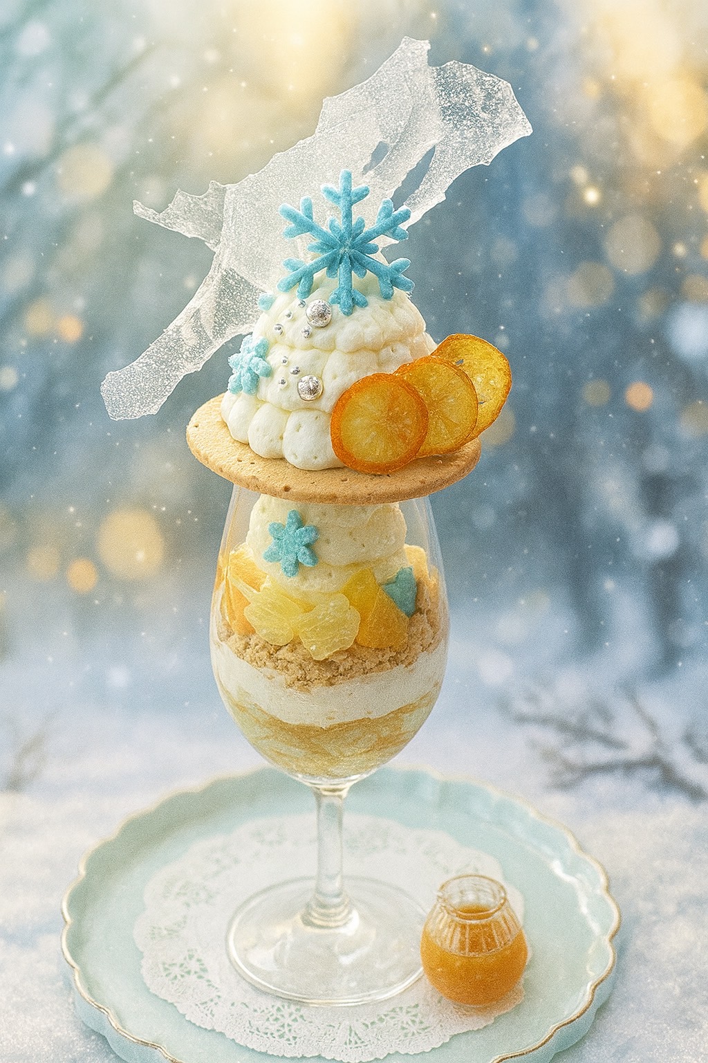 冬の陽だまりをイメージし、太陽の恵をたっぷり浴びた柑橘を主役にしたパフェ