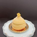 トップには、生クリームがレモンムースに雪のドレスを着させ雪の結晶❄️透明なチュイール、セミドライにした金柑を飾り、