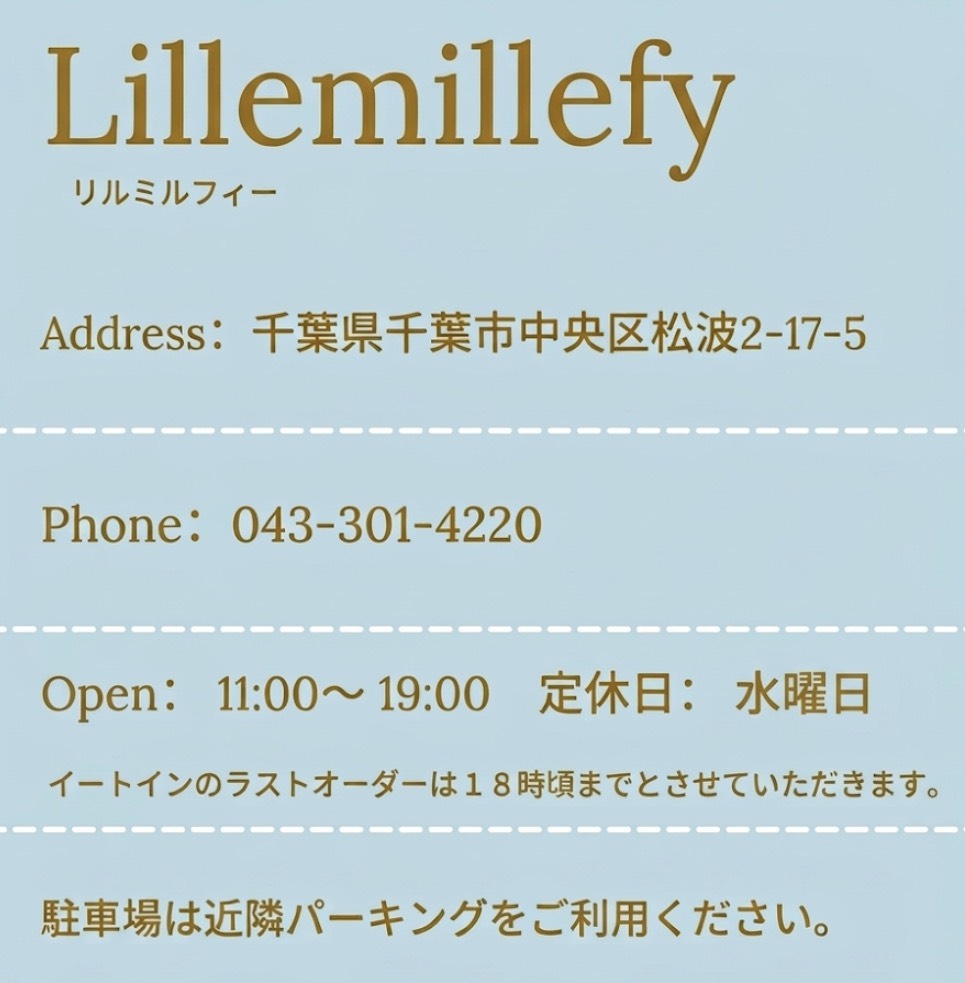 リクルート スタッフ募集のお知らせ2021年2月21日 現在は募集しておりません。 ୨୧┈┈┈┈┈┈┈┈┈┈┈┈┈┈┈┈┈┈୨୧ Lillemillefy(リルミルフィー) 千葉県千葉市中央区松波2-17-5 TEL:043-301-4220 営業時間:11:0...